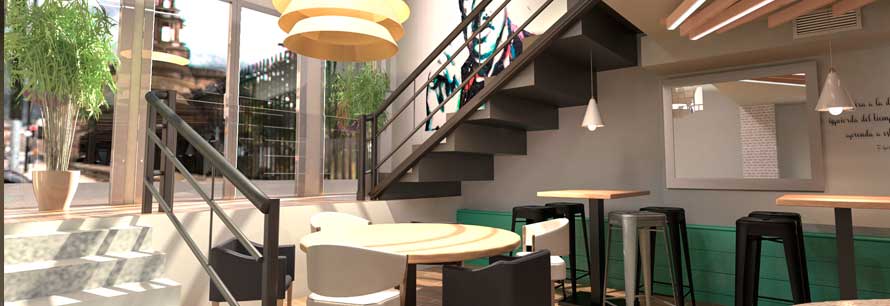 El trabajo consistía en hacer unas imagenes en 3d de la decoración propuesta para un Restaurante en Granada.